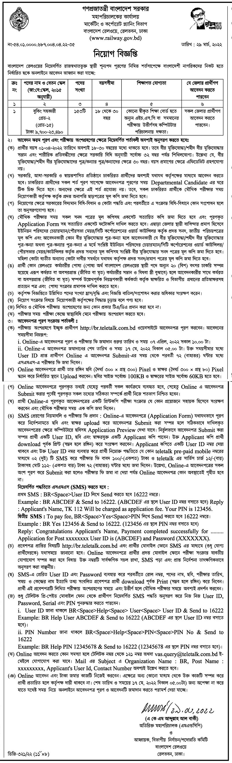 https://railway.gov.bd/ বাংলাদেশ রেলওয়ে নিয়োগ পরীক্ষা সংক্রান্ত যেকোন তথ্য যেমন প্রবেশপত্র সংগ্রহ আবেদন পদ্ধতি অনলাইন আবেদন পদ্ধতি অনলাইন ইত্যাদি জানতে নিম্নে http://br.teletalk.com.bd/ এই ওয়েবসাইটে ভিজিট করুন। আরো বিস্তারিত জানতে ইমেজ সার্কুলার দেখুন।