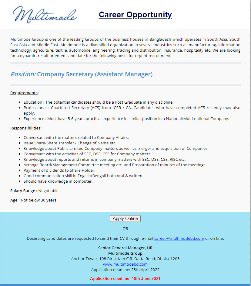 | Job Title | Multimode Group Job Circular |