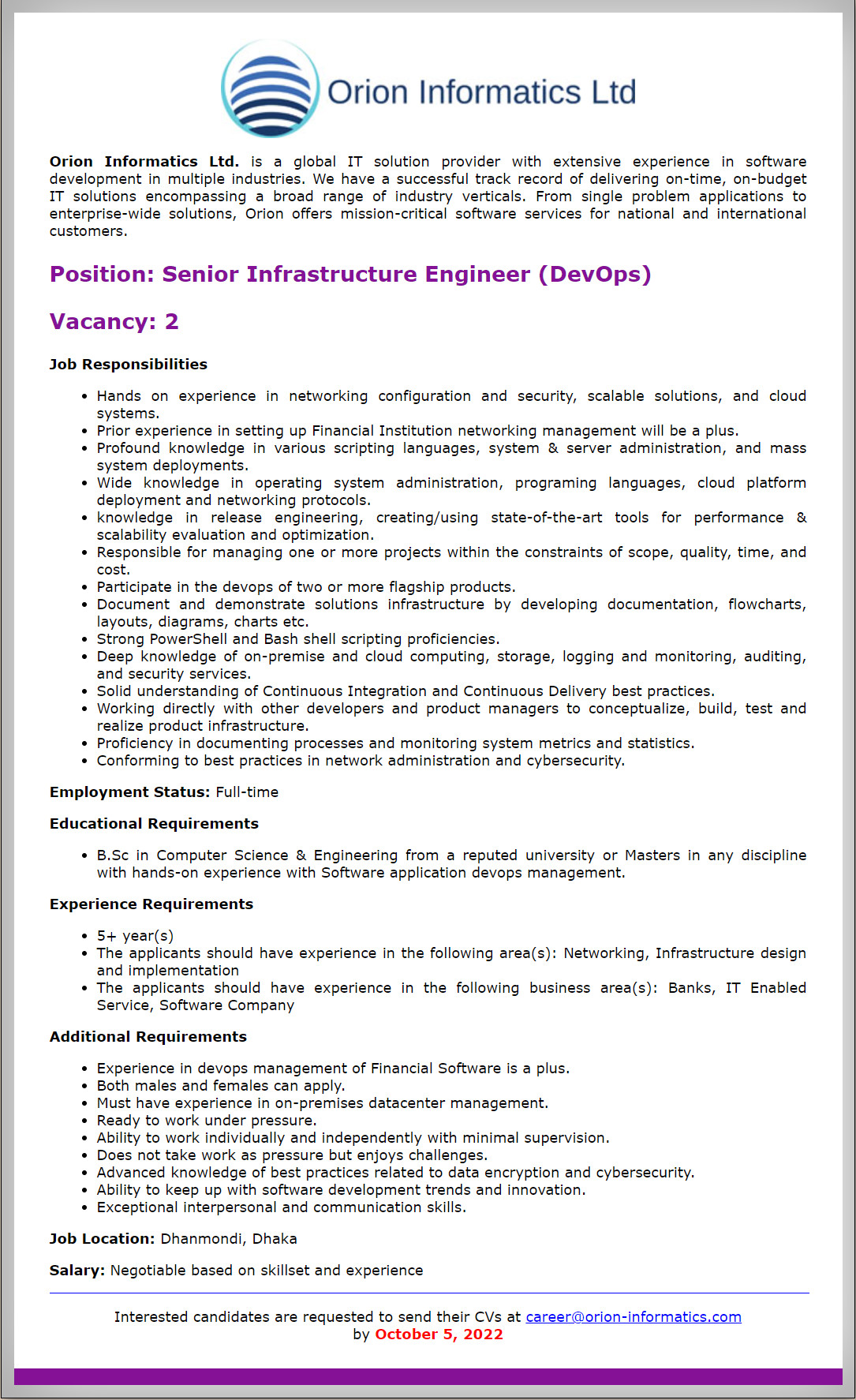 All Orion Informatics Ltd job Circular Posted On BD jobs here