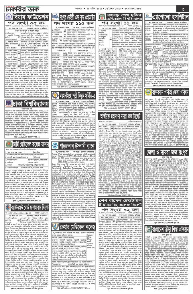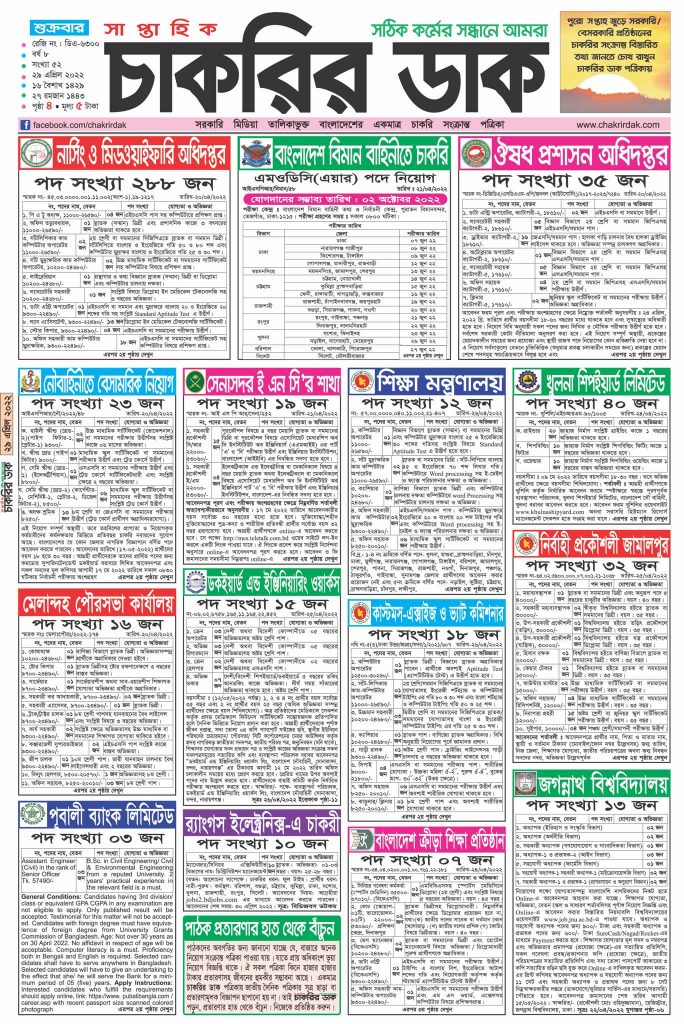 Weekly Job Newspaper –Weekly Job Newspaper. Today is April 29, 2022. Like every other week, this week we are trying to present to you the popular job Newspaper of the country through online. Here you will find job advertisements in various government and non-government organizations. You will also have the opportunity to apply for different positions in different categories. Besides, a large number of unemployed youth in Bangladesh are eagerly waiting for this Newspaper.